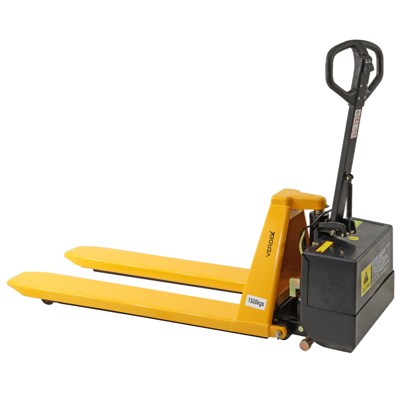 Elevate your material handling operations with the 1500kg Hi-Lift Electric Pallet Truck, a powerful solution designed to combine lifting efficiency with electric-powered convenience. Ideal for use in warehouses, distribution centres, and manufacturing facilities, this pallet truck makes handling heavy loads safer and more efficient. Constructed from high-strength steel, the Hi-Lift Electric Pallet Truck is engineered to support loads of up to 1500kg, providing robust performance in demanding environments. The electric lift function allows for smooth, effortless raising and lowering of pallets, reducing manual effort and operator fatigue. Equipped with a user-friendly control panel and precision motor, the pallet truck ensures reliable and accurate height adjustments. Its durable wheels and ergonomic design facilitate easy manoeuvrability across various surfaces, enhancing overall productivity and workflow. The 1500kg Hi-Lift Electric Pallet Truck is a dependable and efficient choice for businesses seeking to optimise their material handling processes, offering strength, ease of use, and reduced physical strain for enhanced operational efficiency.