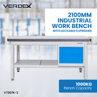The Verdex 2100mm Industrial Work Bench with Lockable Cupboard is designed to provide a robust and versatile solution for demanding industrial and workshop environments. Built with a heavy-duty steel frame, this workbench offers exceptional durability and stability, capable of handling substantial loads and rigorous daily use. The expansive 2100mm work surface ensures ample space for various tasks, including assembly, maintenance, and tool management. Beneath the work surface, the lockable cupboard provides secure storage for tools, equipment, and other valuable items, safeguarding them from unauthorised access and keeping your workspace organised. Featuring adjustable legs, the workbench allows for customised height settings, ensuring ergonomic comfort and adaptability to different user needs. Its industrial-grade construction and professional design make it a reliable and efficient addition to any workshop or industrial facility. Enhance your workspace with the Verdex 2100mm Industrial Work Bench with Lockable Cupboard for a durable, secure, and well-organised solution that supports your operational needs and boosts productivity.