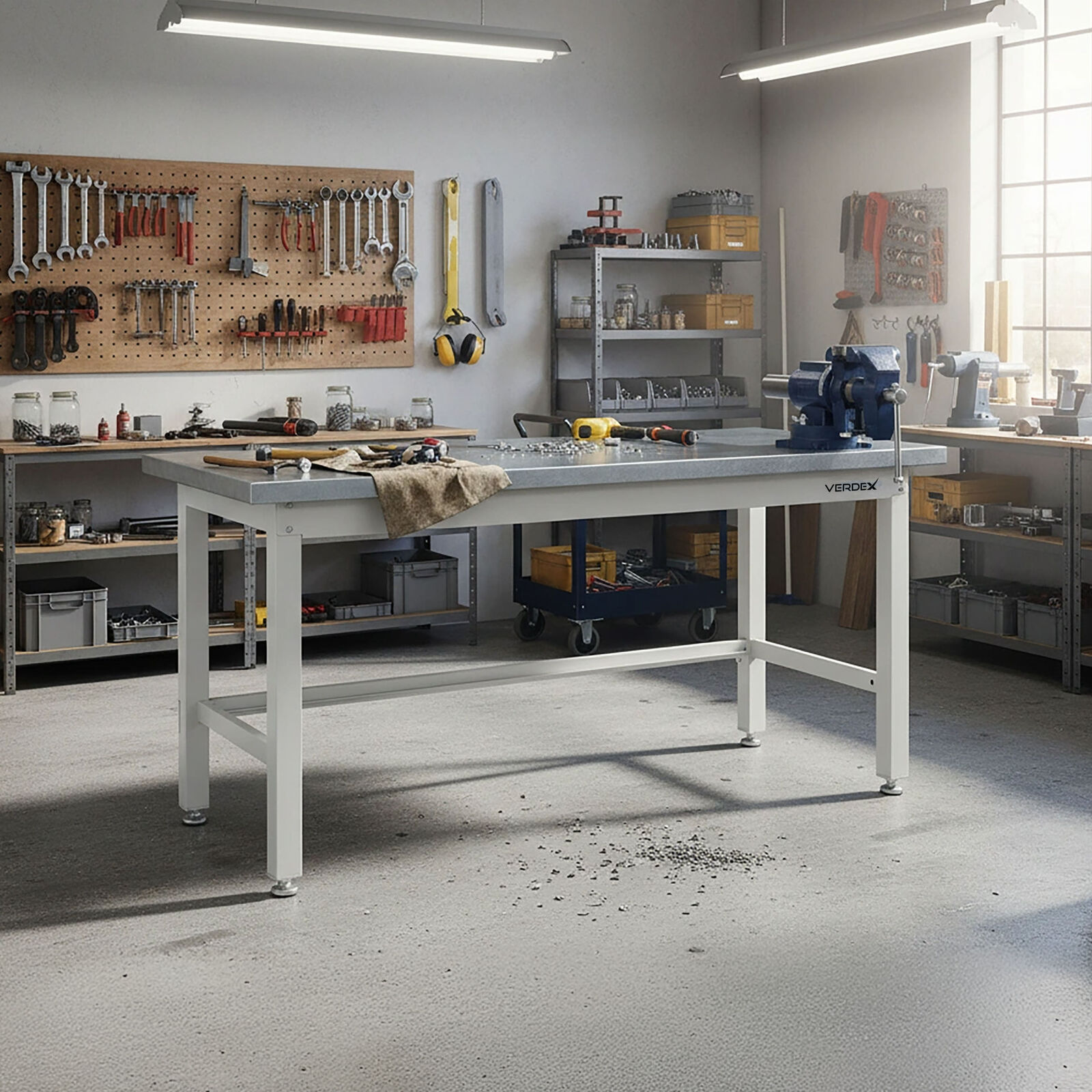 Its solid steel frame with a powder-coated finish offers long service life in workshops, factories, and maintenance areas, providing a stable and dependable workspace day after day.
