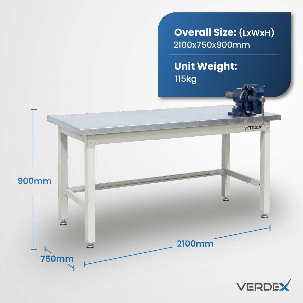 View Details2100mm Workbench with Galvanised Top & Vice - Heavy-Duty Workbench Built for Tough Industrial Tasks