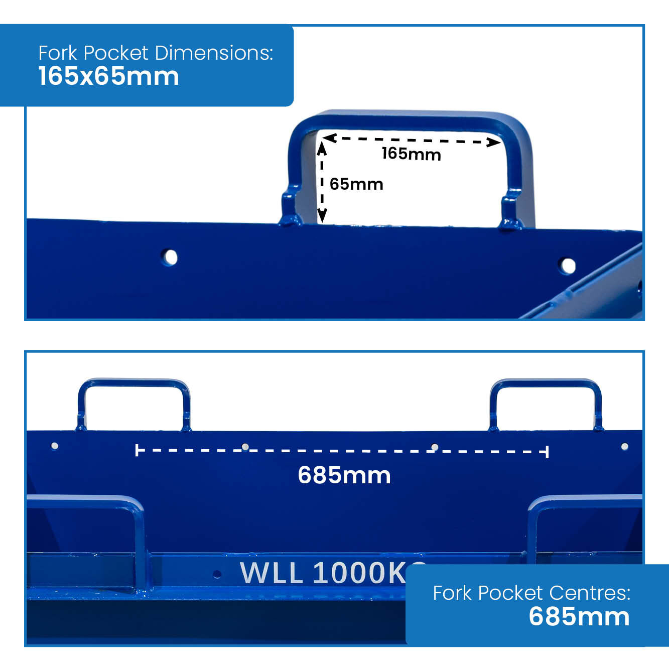- Fork Pocket Spacing: 685mm