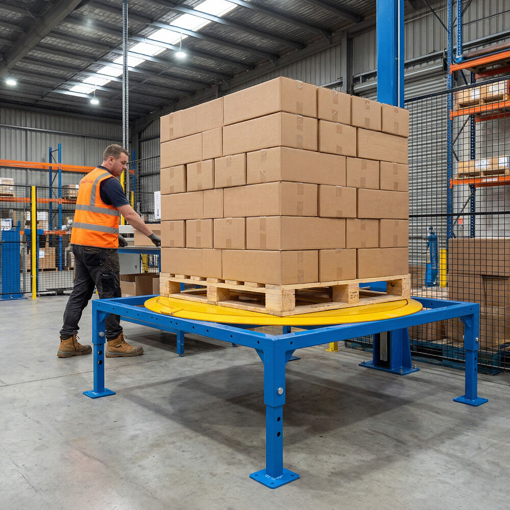 The turntable feature ensures that goods can be rotated smoothly and securely, which helps prevent accidents and reduces the need for multiple workers to manually adjust heavy pallets. Whether used for staging goods, assembling products, or simply rotating stock, the turntable functionality improves operational efficiency and saves time.