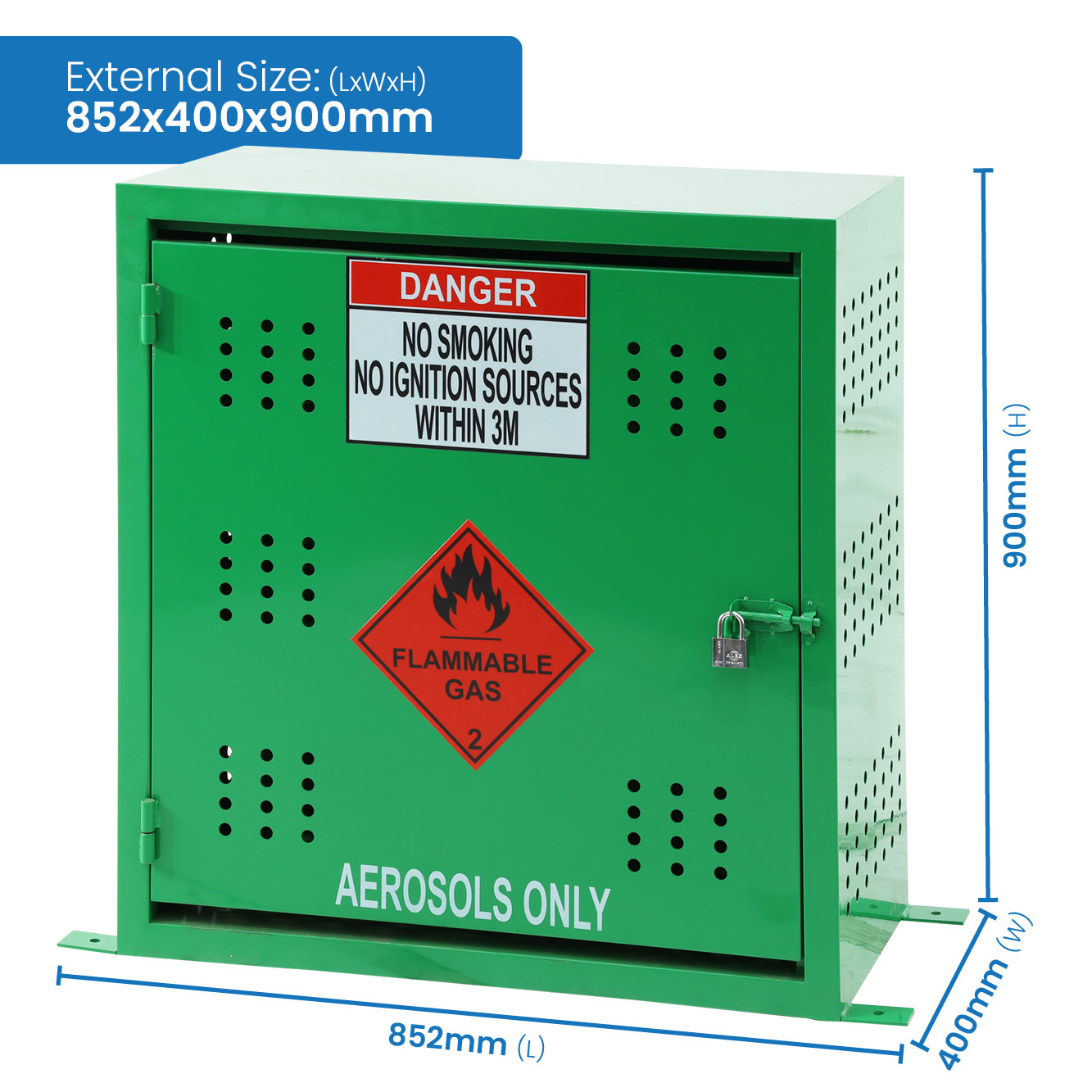 With its capacity to store up to 108 aerosol cans, this cage is perfect for businesses that deal with large quantities of aerosol cans or need a reliable solution to handle a large inventory of hazardous materials. The cage’s internal dimensions of 845x360x850mm and external dimensions of 852x400x900mm make it compact yet big enough to store multiple cans securely.