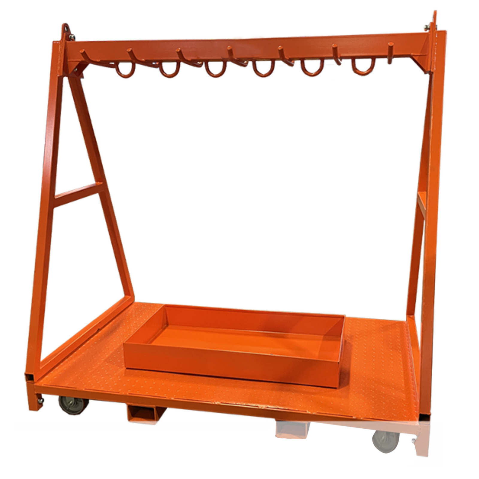 CNG Rigging Storage Rack is designed to efficiently store and organise rigging equipment in industrial facilities. Featuring hanging hooks, this rack allows for easy access and arrangement of various rigging tools, keeping them off the floor and maintaining a tidy workspace. Constructed with a strong ‘A’ frame, the rack provides excellent stability and durability. It is equipped with fork pockets and crane lugs, enabling convenient transport by forklift or crane. Additionally, removable wheels are fitted for enhanced manoeuvrability around the workplace, making it easy to reposition as needed.