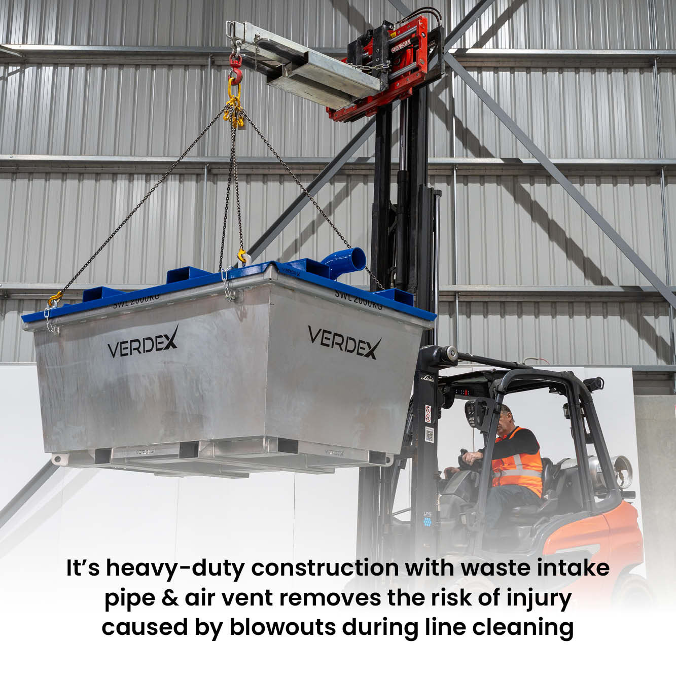 The Verdex Concrete Washout Bins offer a reliable and efficient on-site solution for managing concrete pump line cleans, whether using boom or line systems. Engineered with site safety in mind, these bins feature a robust, heavy-duty design complete with a 125mm NB waste intake pipe and a removable air vent, significantly reducing the risk of blowouts during air or water line cleaning.