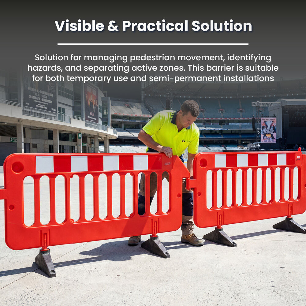 The Crowd Control Barrier is designed to manage access and guide both people and vehicles around work areas and controlled zones. Easy to connect and quick to set up. Suitable for temporary or permanent use at worksites, events, car parks, facilities, and areas where movement needs to be controlled.