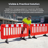 Swivel feet help the barrier remain stable on uneven or sloped surfaces, reducing the risk of tipping during use. The flat-pack design allows the barriers to be stored and transported efficiently when not in use, making them well suited to sites that regularly set up and pack down safety controls.