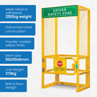 The Driver Safety Zone Cage offers a highly visible and secure designated area for drivers to wait safely during loading and unloading operations. Designed to reduce the risk of serious workplace accidents, this steel exclusion zone helps protect against falling goods and keeps drivers clear of hazardous zones in high-traffic industrial environments.