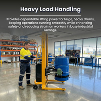 Transform your drum handling processes with the Electric Drum Lifter Rotator, a cutting-edge solution designed for effortless and efficient drum lifting and rotation. Perfect for high-demand industrial environments, this electric lifter rotator streamlines operations by combining advanced technology with ease of use. Equipped with a powerful electric motor, the lifter rotator ensures smooth and precise lifting and rotation of drums, reducing manual effort and enhancing productivity. Its robust construction, made from high-quality materials, guarantees durability and reliable performance even under heavy loads. The adjustable design accommodates various drum sizes, making it versatile for different applications. The Electric Drum Lifter Rotator features intuitive controls that allow operators to handle drums with precision and minimal strain, improving overall safety and efficiency. Ideal for use in warehouses, production facilities, and chemical processing plants, this tool simplifies drum management tasks and supports a more organised and efficient work environment.