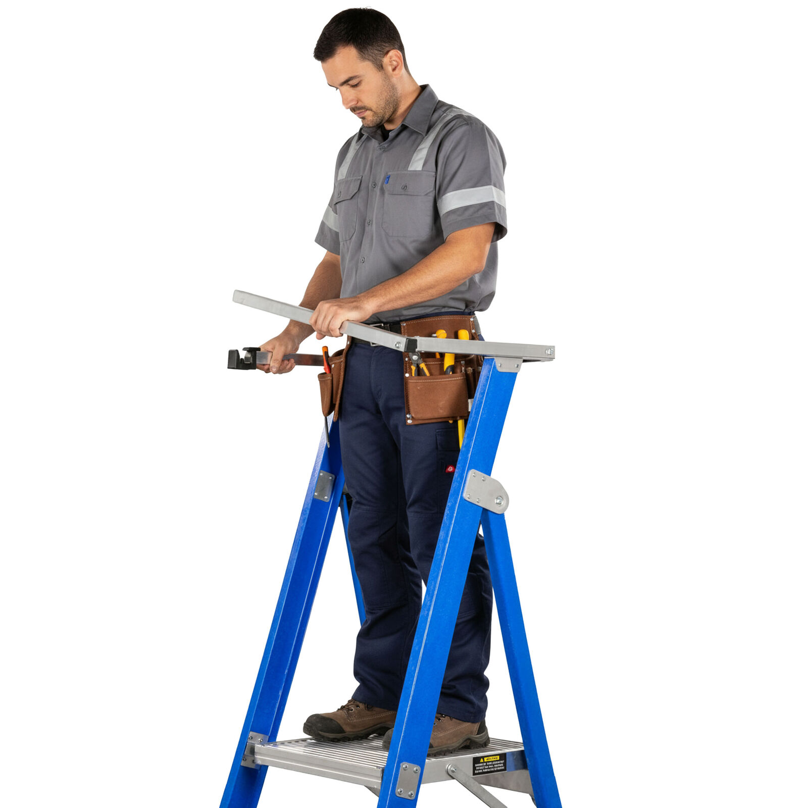 The standout feature of these industrial platform ladders is their fibreglass construction. Fibreglass is a non-conductive material, which means that these ladders provide a crucial level of safety when working near electrical hazards. Whether you're working on high-voltage equipment, electrical wiring, or in close proximity to power lines, the fibreglass platform ladder ensures that workers are protected from the risk of electrocution, unlike metal ladders that can conduct electricity.