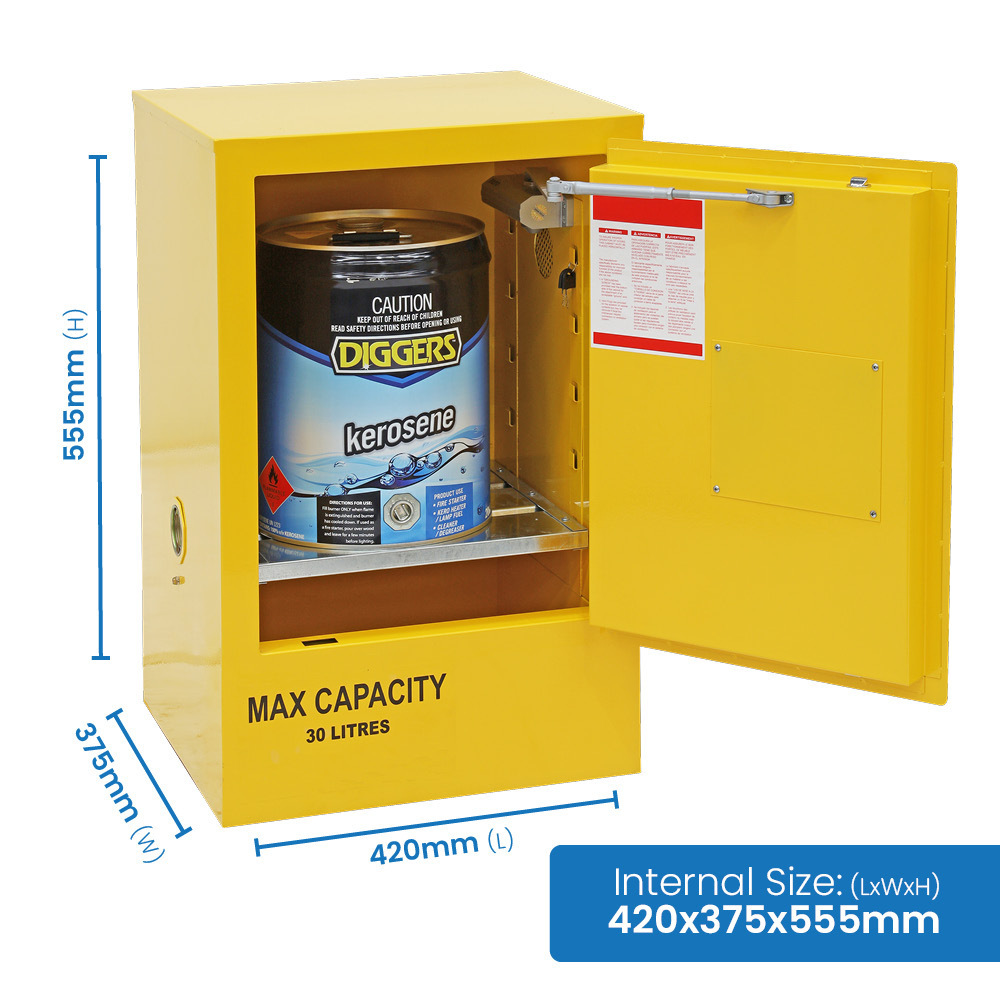 A Flammable Liquid Cabinet provides a controlled and secure storage solution to mitigate these risks. The 30L Flammable Liquid Cabinet is designed to meet industry safety standards and offer a compact yet effective means of storing smaller quantities of flammable materials.