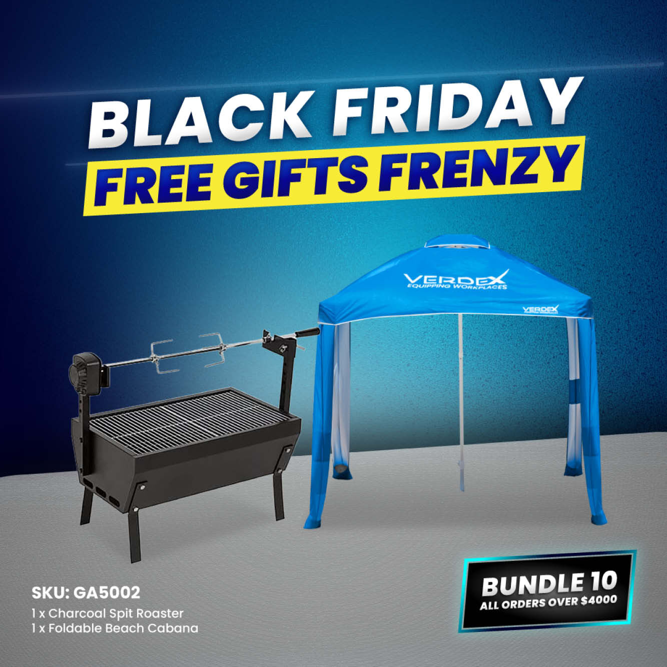 Includes: Verdex Beach Cabana + Verdex Charcoal Spit Roaster