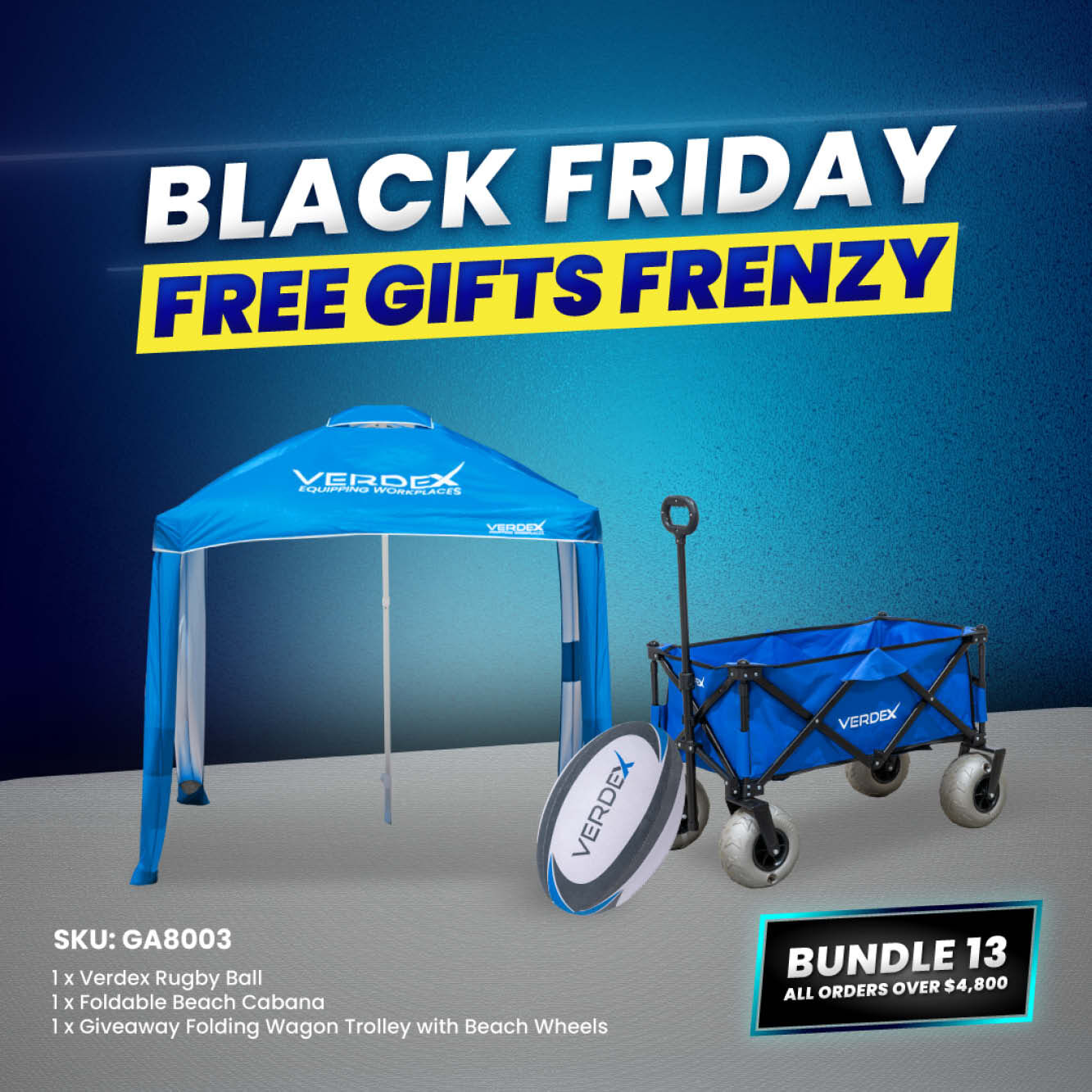 Includes: Verdex Beach Trolley + Verdex Rugby Ball + Verdex Beach Cabana