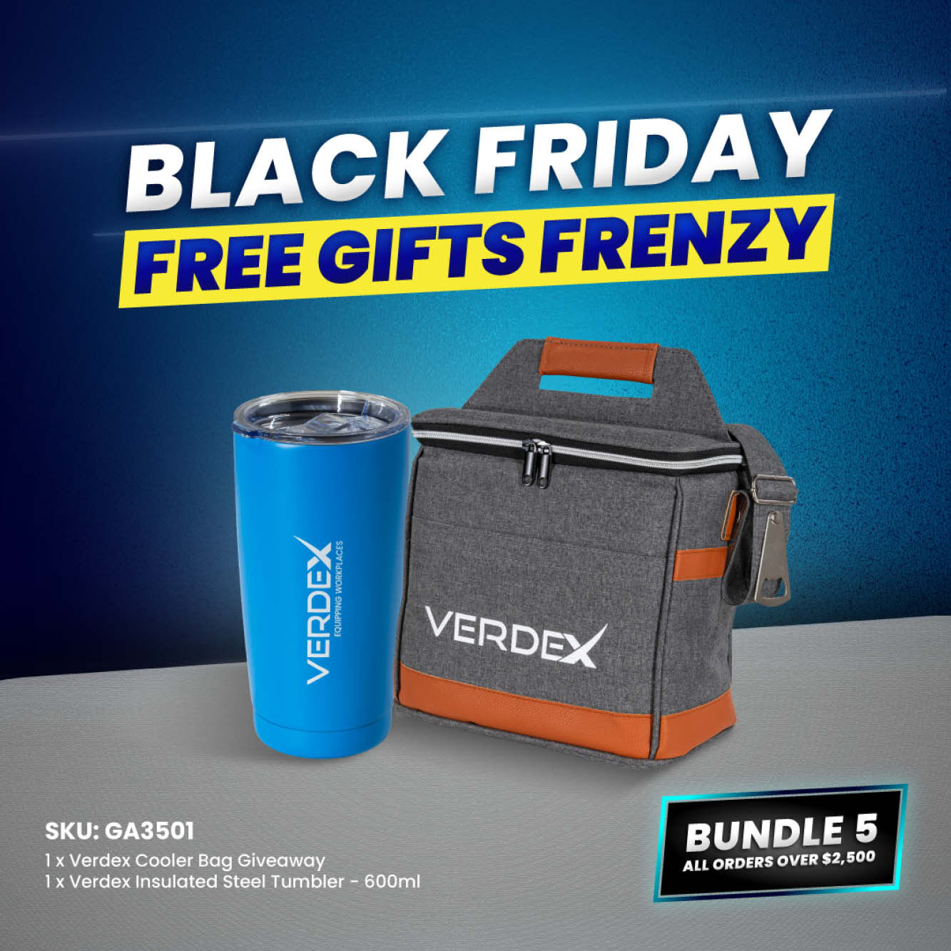 Includes: Verdex Cooler Bag + Verdex Insulated Steel Tumbler