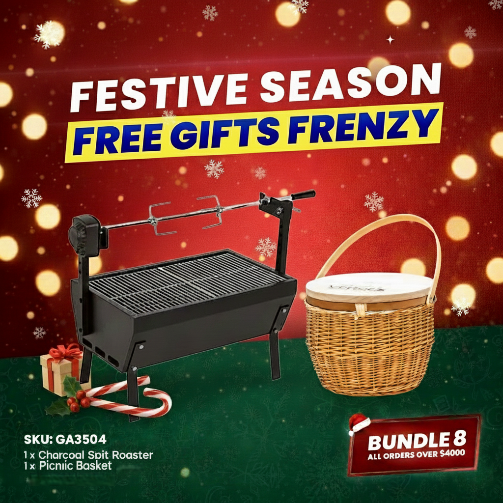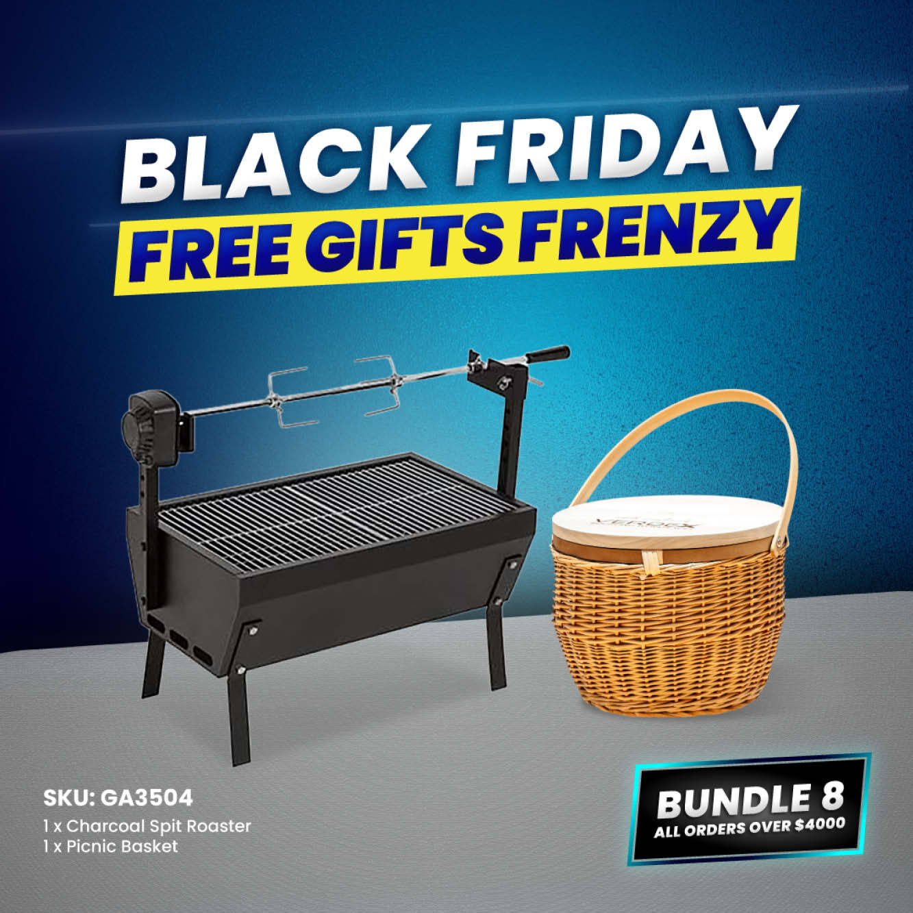 Includes: Verdex Charcoal Spit Roaster + Verdex Picnic Basket