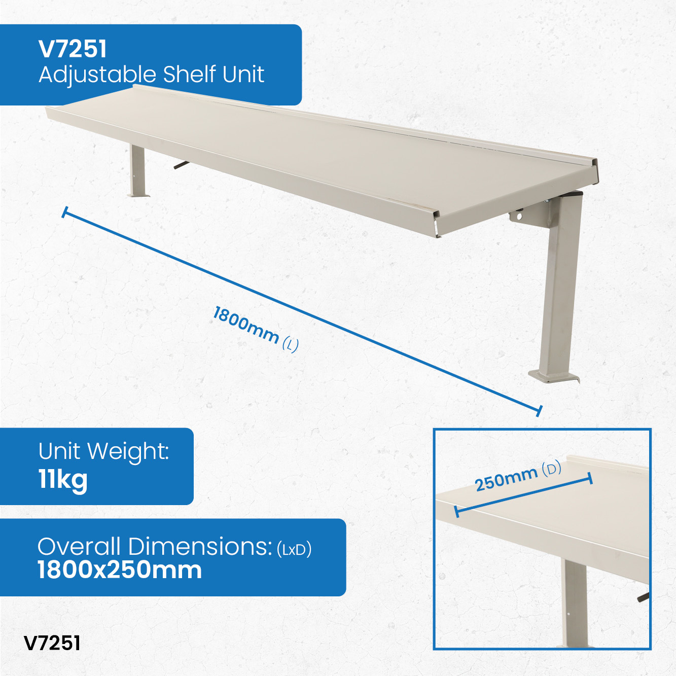 | V7251 | Adjustable Shelf Unit | 1800x250mm (LxD) | 11kg |