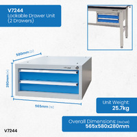 | V7244 | Lockable Drawer Unit (2 Drawer) | 565x580x280mm (WxDxH) - 100mm drawers | 25.5kg |