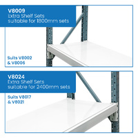 | V8009 | Extra Shelving Set (Suits 600x1800mm DxW shelf sets) | 8kg |