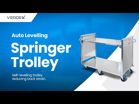 - Auto Levelling Trolley with a self leveling top shelf which dramatically reduces back injuries and strain as the load automatically increases in height as items are lifted off and lowers as items are loaded.