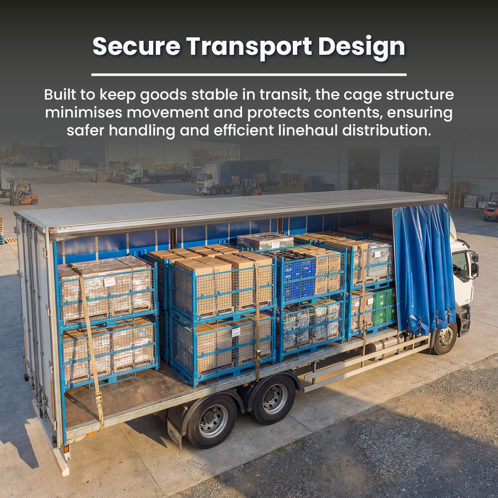 If your operation moves large volumes of goods between sites or through distribution hubs, this cage delivers the durability and efficiency required for demanding environments.