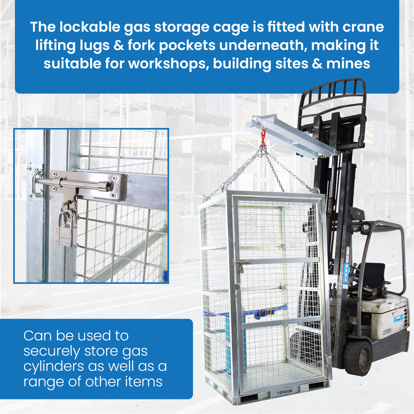 - Secure gas cylinder cage, suitable for workshops, building sites and mines