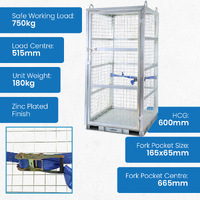 - The cage is fitted with crane lifting lugs and fork pockets underneath