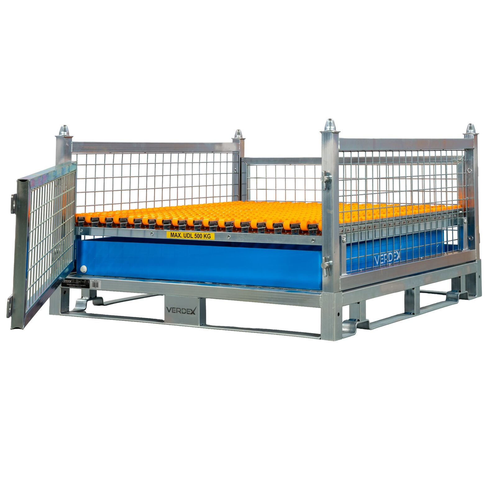 Meanwhile, its structure permits 4-way forklift access and pallet truck entry for seamless handling from any direction, and fully removable front and rear gates offer complete access for quick and easy loading and unloading.