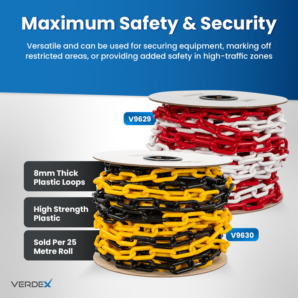 The flexibility of Safety Chains is another reason why they are a popular option for workplace safety. Sold in 25-metre rolls, the length of the chain can be adjusted to suit different areas. Whether you need to block off a narrow walkway or enclose a wide section of a yard or building site, you can easily cut and adjust the length when required.