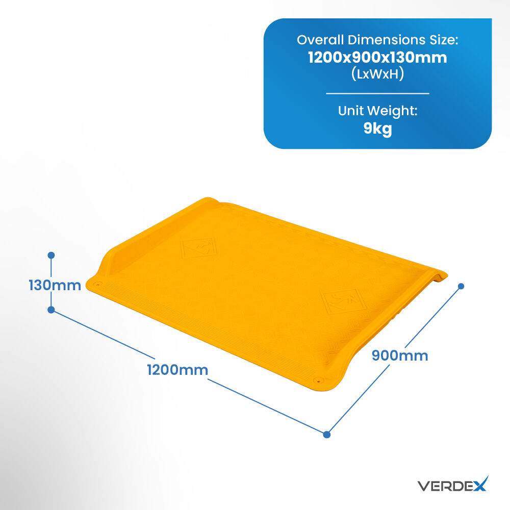 With an overall size of 1200 × 900 × 130mm and a load capacity of 250kg, the ramp is suitable for pedestrian traffic, trolleys, carts, wheelchairs, and similar equipment. Its balance of strength and portability makes it a practical choice for both indoor and outdoor applications.