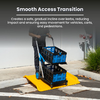 The Safety Kerb Ramp is used to improve access over kerbs in both public and workplace areas. It supports the movement of trolleys, wheelchairs, strollers, and foot traffic at locations such as driveways, car parks, shopping centres, and building entrances, and can be secured or stored as needed.