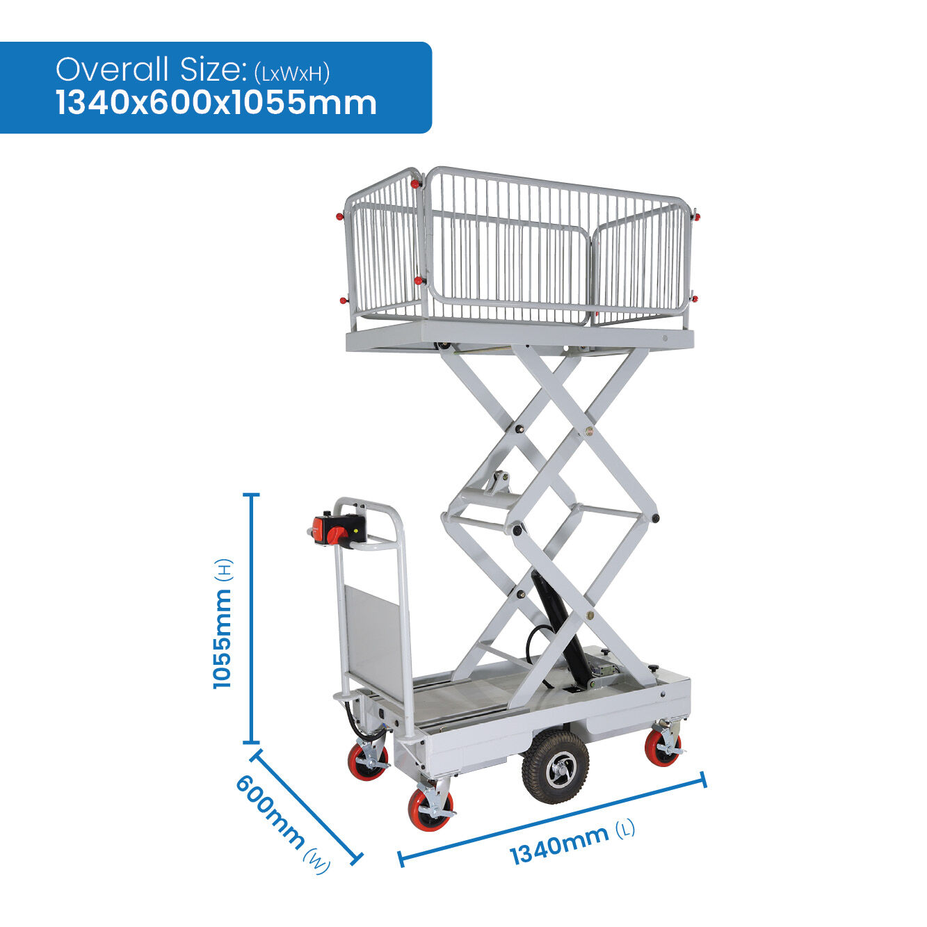 Self Propelled Electric Scissor Lift Trolley with Cage (double scissor)