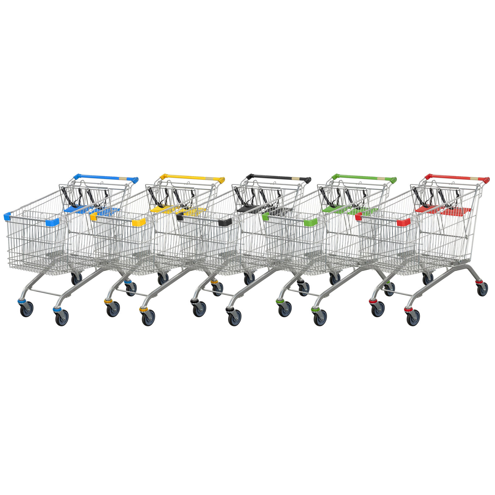 Purpose-built for performance, this trolley combines practicality, safety, and ease of use. The robust wire basket design ensures durability under heavy use, while the front basket divider helps organise groceries and delicate items. Families will appreciate the secure folding child seat with a safety strap, and operators will value the quiet, 360° swivel castors that glide effortlessly through aisles. The comfortable handle and protective corner guards add finishing touches that make this trolley as functional as it is reliable.
