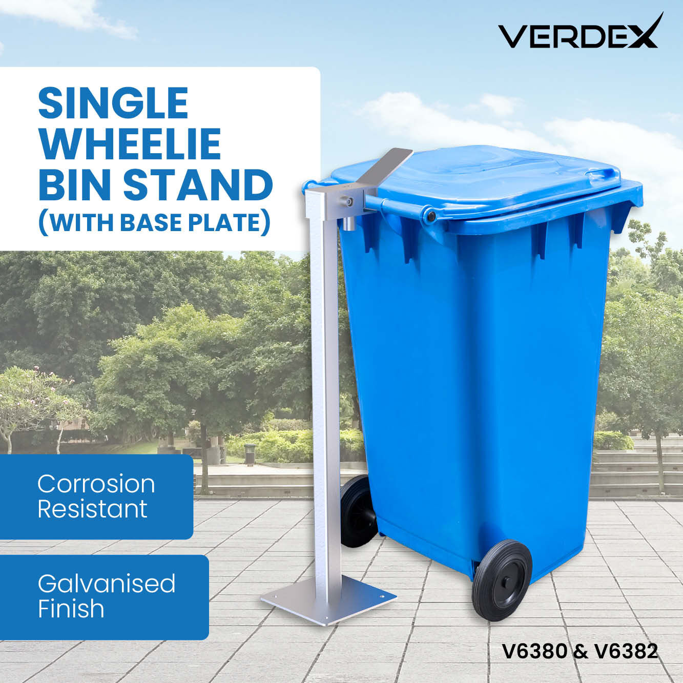 | V6380 | Single Wheelie Bin Stand with Base Plate (120L) | 395x250x1030mm | 10.5kg |