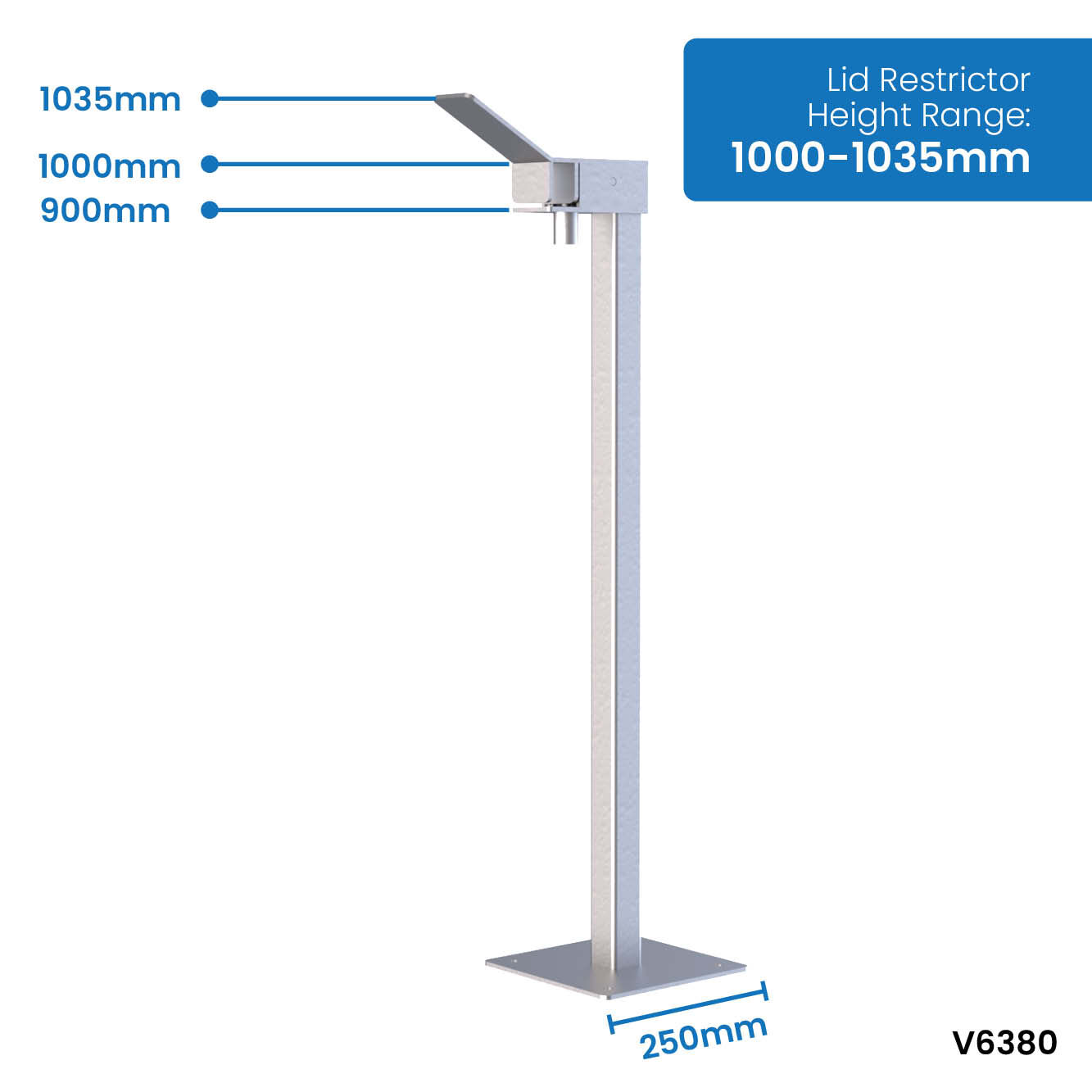 - The stands come standard with a lid restrictor & a spring loaded locking mechanism