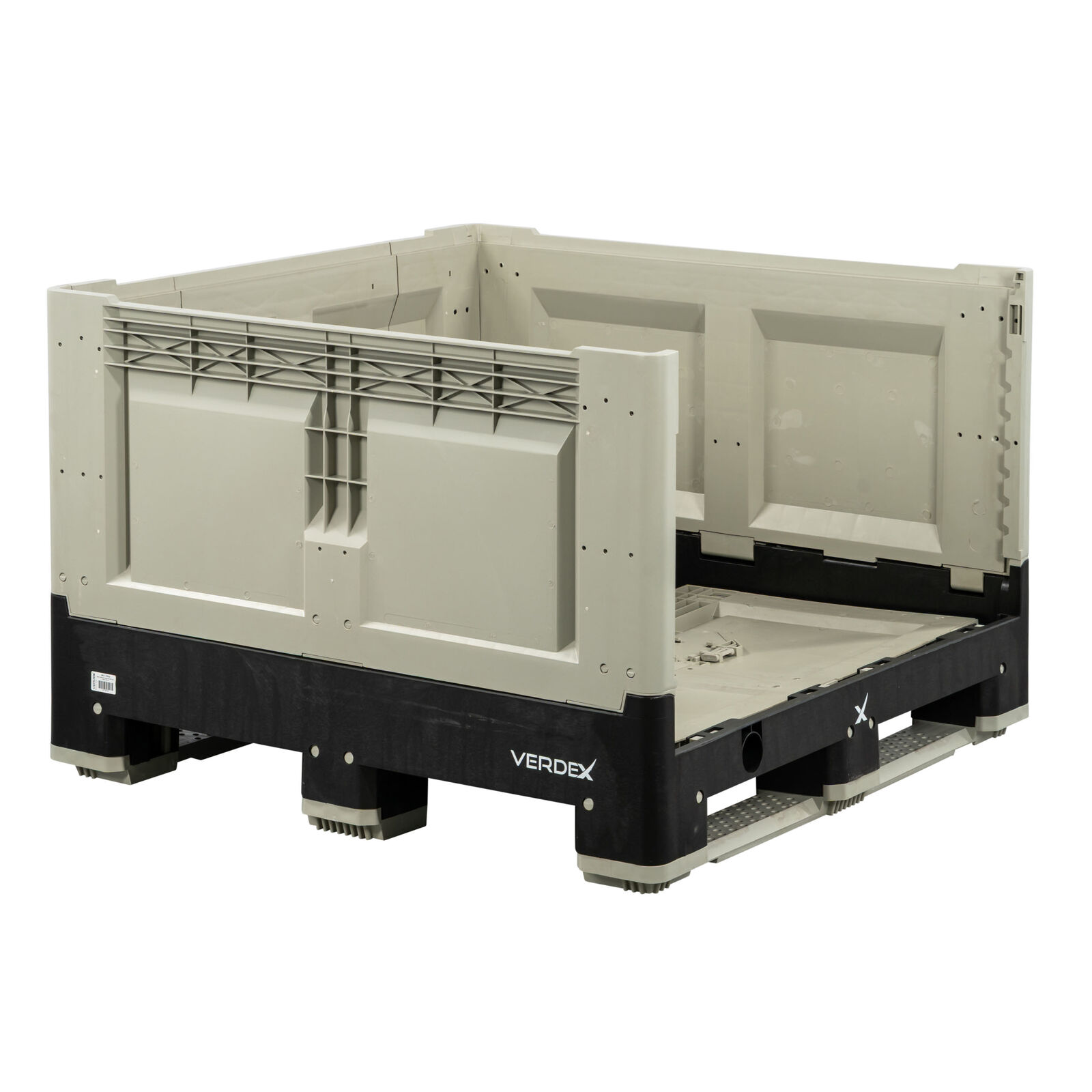 Solid Collapsible Bin with Fold-Down Door: High-Capacity, Hygienic Bulk Storage Solution