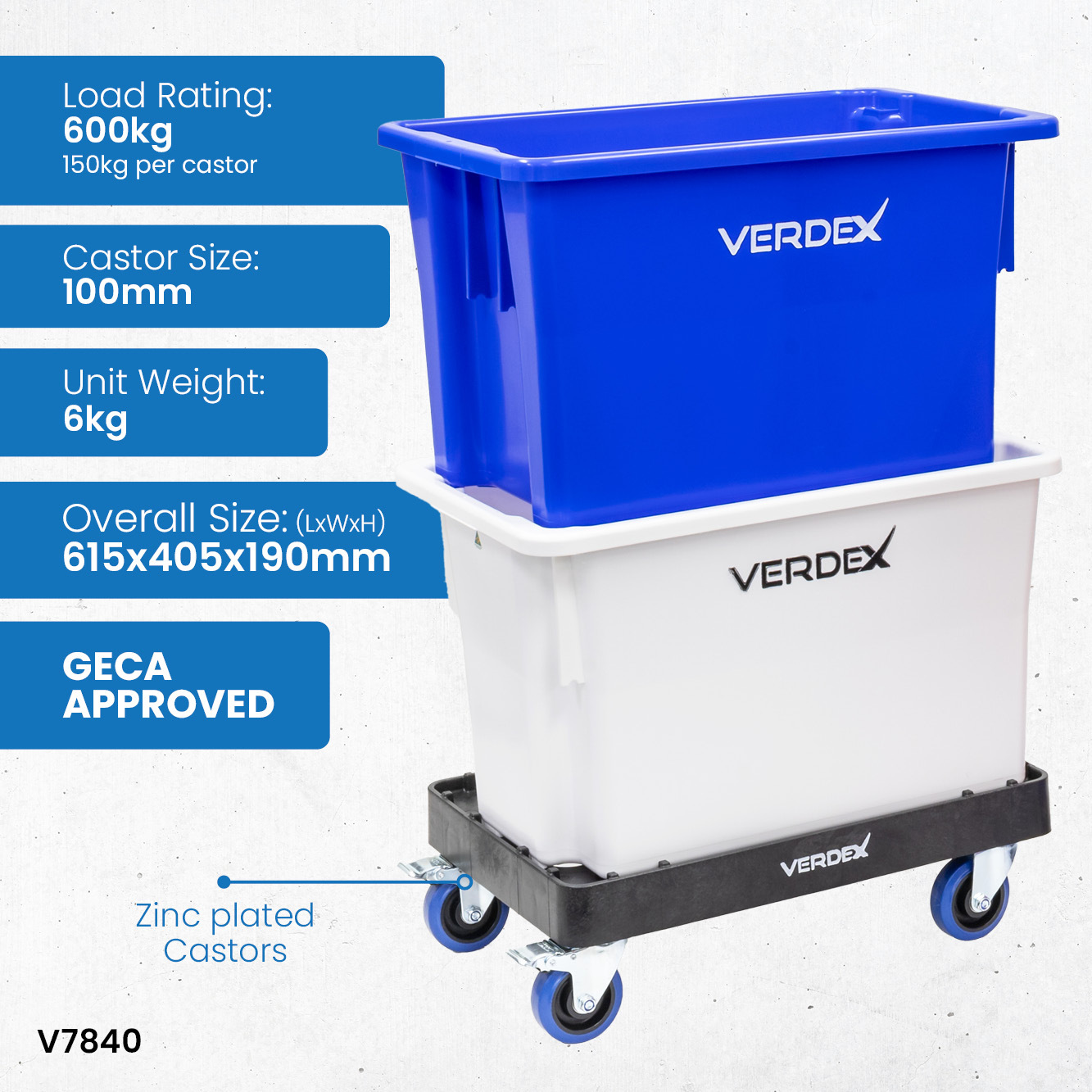 Enviro Dollie (615x405x190mm LxWxH) - with stainless steel castors (Blue Colour Frame)Product Code: V7841