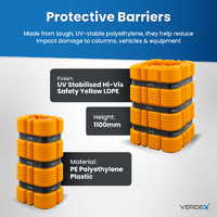 The Column Protectors range is designed to shield structural posts from collisions in high-traffic environments such as warehouses, loading docks, commercial facilities, and car parks. Made from tough, UV-stabilised, hi-visibility polyethylene, each piece clips onto existing protectors to expand coverage, reduce damage, and improve overall site safety.