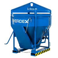 Concrete Kibble 1.5 Cubic Metre The Concrete Kibble 1.5 Cubic Metre is designed to handle substantial loads and large volumes of material with reliability and ease. With a working load limit (WLL) of 4000kg and a capacity of 1.5 cubic metres, this kibble is ideal for heavy-duty applications involving concrete and other bulk materials. Built for durability, the kibble features a robust construction and is finished in a high-visibility safety blue enamel, ensuring enhanced safety and visibility on site.