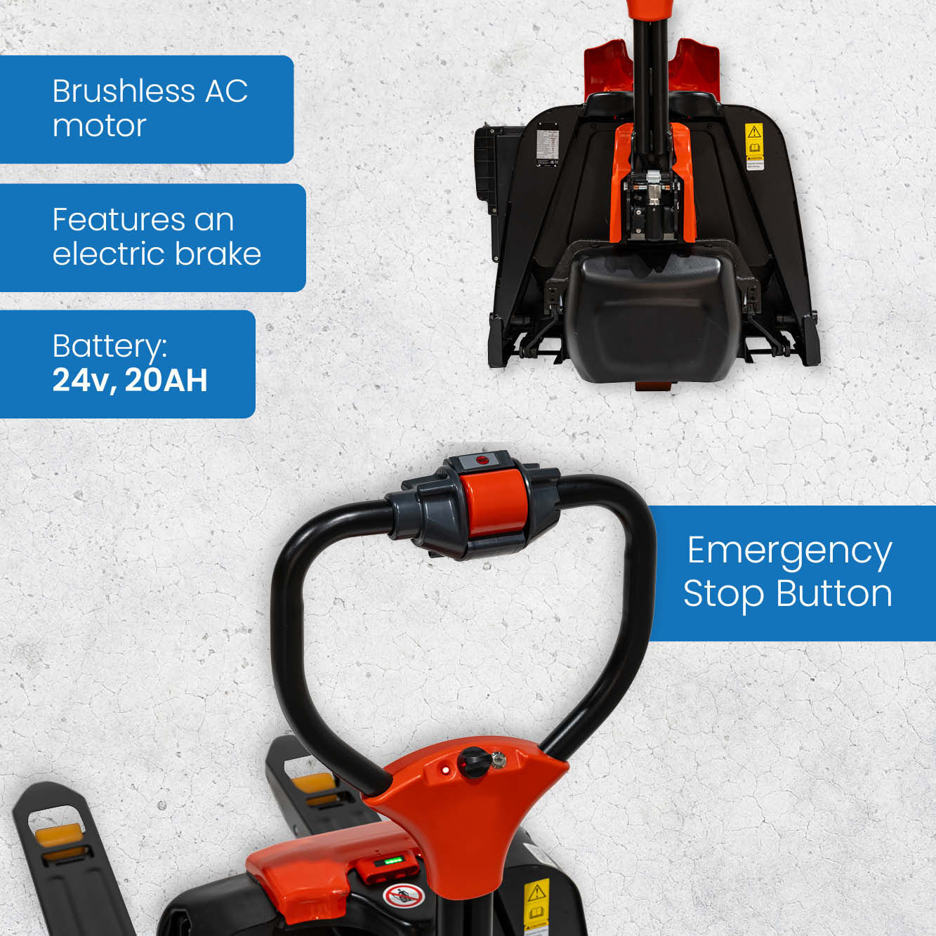 This electric pallet truck is packed with practical features that make it a standout choice across warehouse and logistics settings: